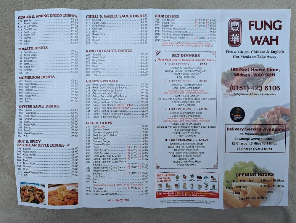 Fung Wah is a gem nestled in Farnworth, Widnes, offering an inviting and casual dining experience. The location features both takeaway and dine-in options, allowing patrons to enjoy their meals according to their convenience. The atmosphere is family-friendly and welcoming, making it an ideal spot for casual dinners or quick bites.